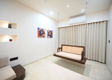 The 4BHK apartment in Vaishnodevi, Ahmedabad is designed as a boho-inspired modern home where openness and calm take centre stage. Clean minimal lines are softened with PU-finished fluted panels, customised artwork, and curated indoor plants, creating a space that feels warm, expressive, and thoughtfully layered.